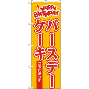 のぼり旗 【3枚セット】 バースデーケーキ ご予約承り中 (橙) [No.565] (受注生産・キャンセル不可)