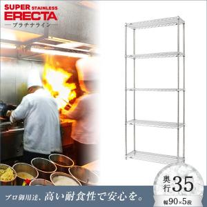予約販売(2月中旬出荷予定) ステンレスエレクターシェルフ 幅91x奥行35.9cmx高さ219.7cm PSポール 5段 業務用