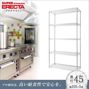 予約販売(2月中旬出荷予定)ステンレスエレクターシェルフ 幅106.2x奥行46cmx高さ158.7cm PSポール 5段 業務用