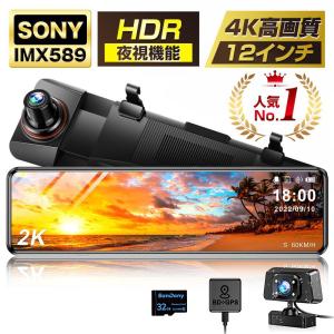 ドライブレコーダー ミラー 12インチ フルタッチパネル SONYセンサー 4K(1440P) FHD高解像度 170度広角視野 プレゼント 2025最新版 おすすめ