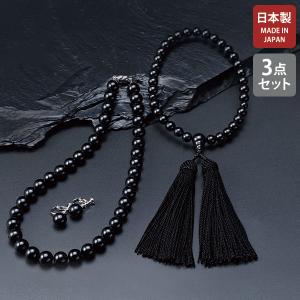念珠 数珠 ネックレス イヤリング レディース 40代 50代 60代 70代 ミセス シニア 皇室 お通夜 冠婚葬祭 お彼岸 漆黒の宝石ジェット3点セット◎