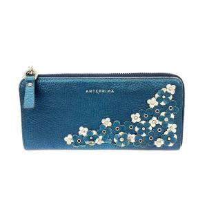 ANTEPRIMA アンテプリマ 長財布 レザー/フラワー L字ファスナー ブルー レディース