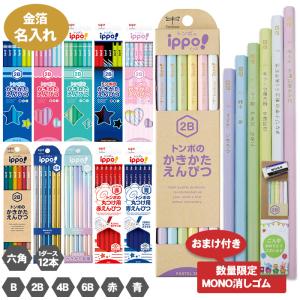名入れ 鉛筆 箔押し トンボ鉛筆 かきかたえんぴつ ippo! ギフト 六角軸 B 2B 4B 6B 1ダース 12本 入学 卒園 オリジナルBOX MONO消しゴム 金箔 イッポ えんぴつ