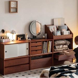 CAGUUU モジュール式多機能キャビネット L72*W38*H36cm 壁面収納家具 木製 引き戸 引き出し付き 本棚 収納棚 キッチンラック