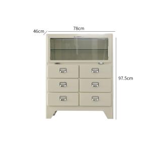 CAGUUU マグネット対応ガラスドアキャビネット L78*W46*H97.5cm モダンキッチンキャビネット 大容量収納 スチールラック 引き出しと棚付き