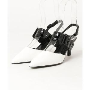パンプス Tバー バックルポインテッドトゥスリングバックパンプス