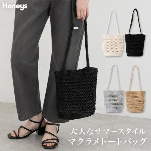 トートバッグ バッグ 鞄 オフィス きれいめ マクラメ編み マグネット 裏地付き ナチュラル 夏 白 黒 レディース Honeys ハニーズ マクラメトートバッグ