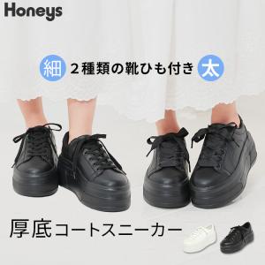スニーカー 靴 シューズ コートスニーカー 厚底スニーカー 厚底 合皮 フェイ Honeys ハニーズ 厚底コートスニーカー