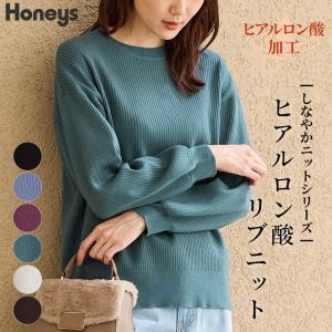 トップス ニット セーター 長袖 しなやかニット ヒアルロン酸加工 リブ レディース SALE Honeys ハニーズ ヒアルロン酸リブニット