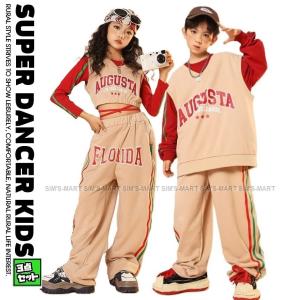 キッズダンス衣装 セットアップ ヒップホップ 衣装 子供ダンス服 ダンス衣装 キッズ 派手 男の子 ガールズ トップス ベスト パンツ K-POP 韓国 ベージュ 赤