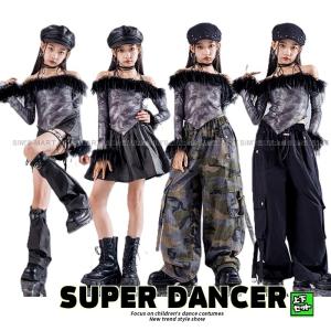HIPHOP ヒップホップ ダンス 衣装 キッズ K-POPダンス衣装 韓国 カーキ 迷彩柄