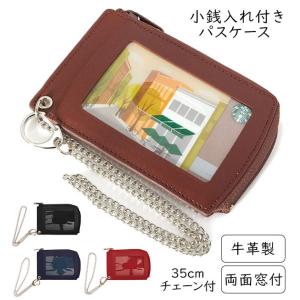 パスケース 小銭入れ Raymay レイメイ藤井 通販 定期入れ コインケース 両面 2枚 レザー 牛革 チェーン付き シンプル 無地 通勤 通学 コイン入れ付き