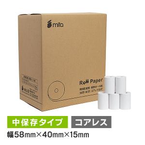 環境配慮型芯なし 感熱ロール紙 紙幅58mm×40mm×コアレス 中保存 120巻入 58mm×40mm×12mmと同等タイプ モバイルプリンター・決済端末対応 レシートロール