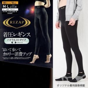 (送料無料) RIZAP 着圧レギンス 10分丈 ハイウエストタイプ はいて歩いてカロリー消費 80デニール ブラック 黒 (M-L・L-LL) 日本製 グンゼ ライザップ RZF203