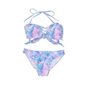 水着 ハイウエストフリルビスチェビキニ/水着 レディース