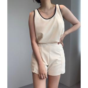 セットアップ バッククロスタンクトップ×パンツセットアップ レディース