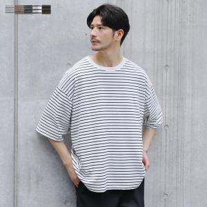 Tシャツ カットソー トップス メンズ 夏 夏服 ビッグシルエット 半袖 ボーダー クルーネック ドロップショルダー M L XL
