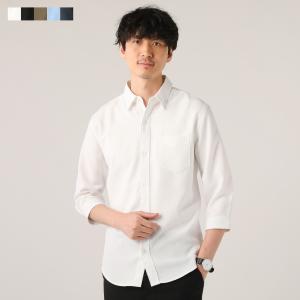 シャツ レギュラーカラー メンズ 7分袖 接触冷感 涼しい 伸縮性 細身 水色 ネイビー