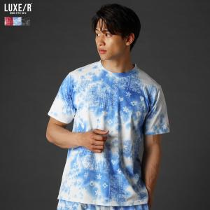 カットソー Tシャツ メンズ 夏 クルーネック タイダイ ペイズリー 総柄 半袖 伸縮性 レッド 水色 M L XL