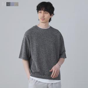 カットソー Tシャツ メンズ 夏 秋 半袖 5分袖 フェイクレイヤード レイヤード風 メランジ パイル 伸縮性