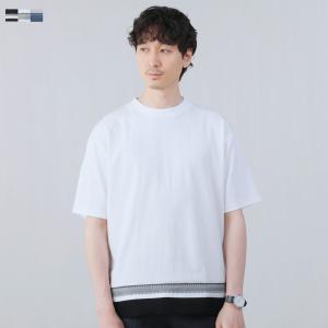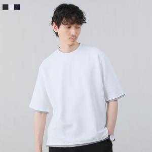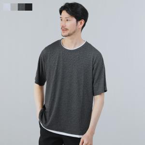 Tシャツ カットソー メンズ 夏 夏服 春 春服 半袖 フェイクレイヤード クルーネック ハニカム ストレッチ M L