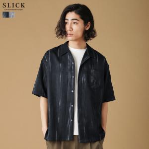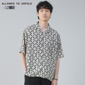 オープンカラーシャツ シャツ メンズ 春 夏 半袖 5分袖 レギュラーカラー スタンダードカラー アブストラクト プリント 転写 サイドスリット M L 5220108