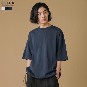 Tシャツ カットソー トップス メンズ 半袖 5分袖 春 夏 クルーネック ヘビーウェイト ダブルヤーン 天竺 綿100 オーバーサイズ ドローストリング M L 5230101
