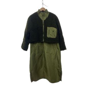 SUMI STYLE◆ボアブルゾン付き馬刺繍コート/カーキ/無地/3way/スタンドカラー/袖リブ/ドロスト