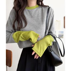 tシャツ 「予約受付中」レイヤード見えで仕上げる、きれいめモード。指穴(サムホール)付き袖配色切り替えテレコプルオーバー(長袖) レディース
