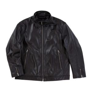 スタンドカラーレザーブルゾン 大きいサイズ メンズ TETE HOMME ブラック