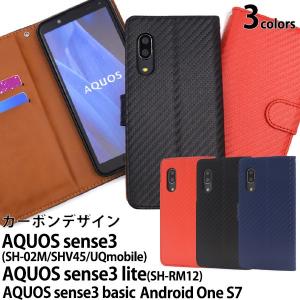 送料無料 アクオス センス3 AQUOS sense3(SH-02M/SHV45/SHV48/UQmobile) /Android One S7 対応 カーボンデザイン手帳型ケース