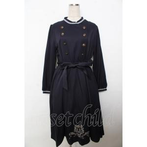 axes femme / 裾刺繍ナポレオン風ワンピース F 紺 Y-25-10-03-107-AX-OP-SZ-ZI