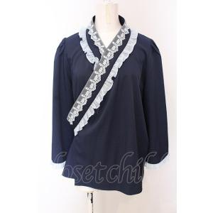 axes femme kawaii / 衿レース付き和風ブラウス ネイビー O-25-04-30-2187-AX-BL-IG-OS