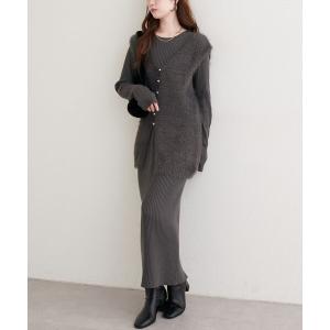 ワンピース 「osono」ラメフェザーニットベスト×リブワンピース