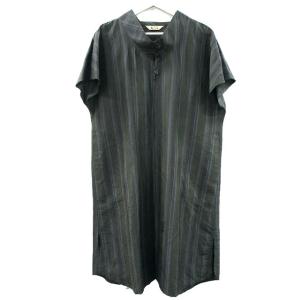 藍工房 NUNO KOBO シルク オーバー ブラウス M〜L ストライプ グリーン系 トップス 絹 レディース