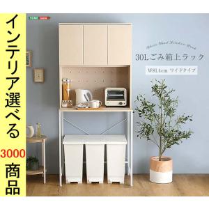 レンジ台 81.5×45.5×181cm 食器棚付き ゴミ箱上空間活用 2口コンセント付き ホワイトウォッシュ色 YHFSKT30L3