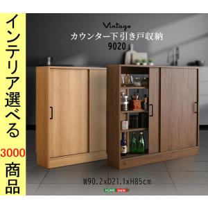キャビネット 90.2×21.1×85cm 引き戸タイプ 背板なし ウォールナット・シャビーオーク色 YHVKSS9020