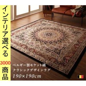 ラグマット モケット織り 190×190cm レーヨン メダリオン柄 四角形 ベルギー製 マルチカラー色 YC8500045522