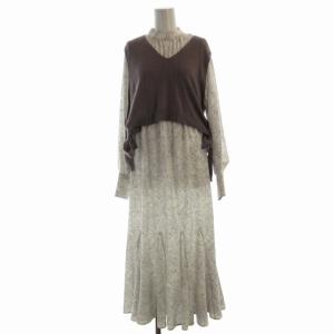 スナイデル SNIDEL ベストセットワンピース マキシ ロング ニット 総柄 長袖 0 白 ホワイト 茶 ブラウン SWNO215049 /RO レディース