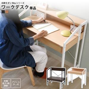 ワークデスク 幅81.5 おしゃれ PC パソコン Rita 北欧 スチール 木製 引出し付き 棚付き カフェ風 フリーデスク、平机