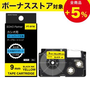 \11/13全品P増倍/カシオ用 ネームランド 互換 幅9mm 黄色 テープ 黒文字 長8m PT-9YW(XR-9YW互換) 全14色 CASIO用 カラーラベル カートリッジ