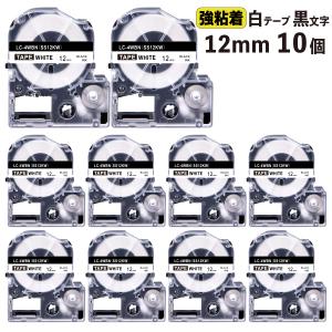 キングジム用 テプラPRO 互換 強粘着 カラーラベル カートリッジ 12mm 白 テープ 黒文字 長8m SS12KW 互換 10個セット