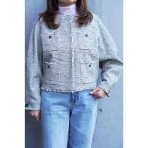 ツイードジャケット 行事 お仕事 オフィス レディース アウター ノーカラー ゆったり ショート丈 おしゃれ きれいめ 上品 シンプル 通勤
