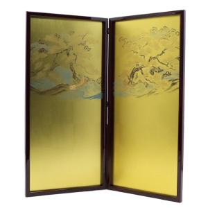 アウトレット品 屏風単品 二曲金屏風 105cm ゴールド 山水 レトロ アートスタンド 26a-ya-0908