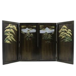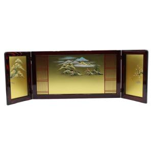 アウトレット品 屏風単品 三曲屏風 18号 ゴールド 箔に松竹梅 レトロ アートスタンド 26a-ya-0921