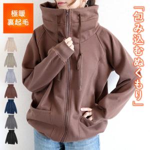 アウター レディース ジップパーカー 秋 冬 黒 おしゃれ 長袖 裏起毛 極暖 暖か ボリュームネック ハイネック タートルネック 羽織り^p053^