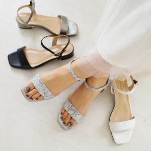 サンダル レディース ポインテッドトゥ ストラップサンダル 歩きやすい 履きやすい 低ヒール アミアミ