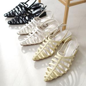 サンダル レディース ポインテッドトゥ マルチストリング ストラップ 春夏 バックストラップ ローヒール アミアミ