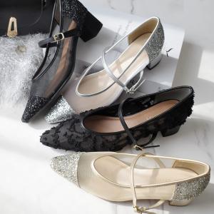 パンプス レディース チュール メリージェーン 4センチヒール 歩きやすい ストラップ 履きやすい 春夏 アミアミ