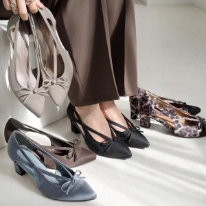 パンプス リボン カットアウト ポインテッドトゥ6センチヒール 美脚 レディース 結婚式 歩きやすい 太ヒール アミアミ
